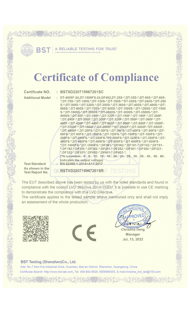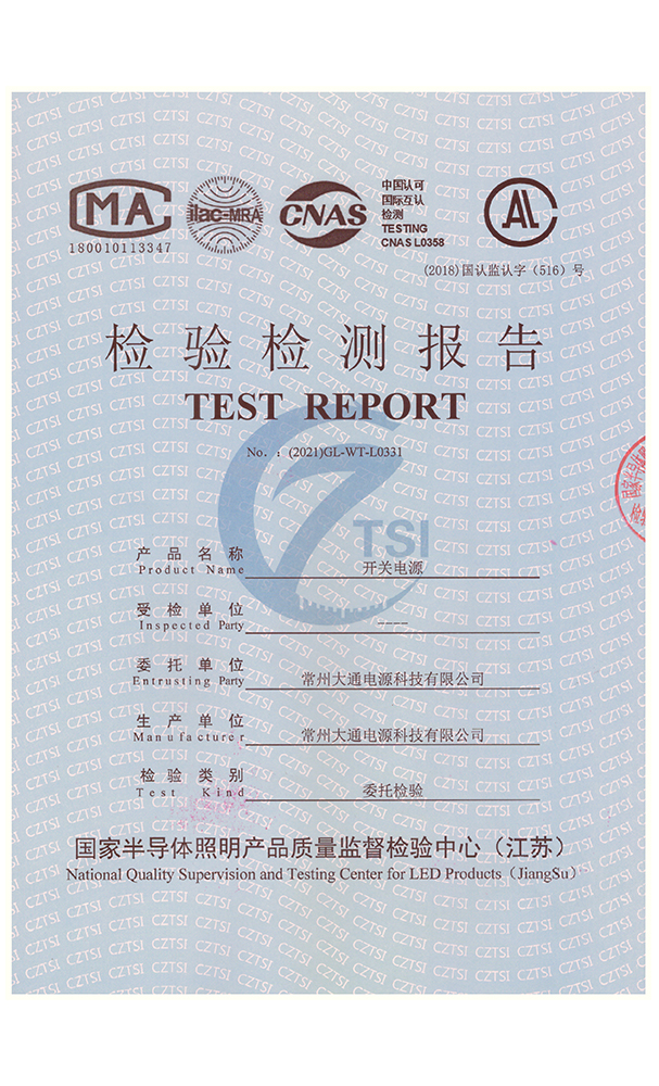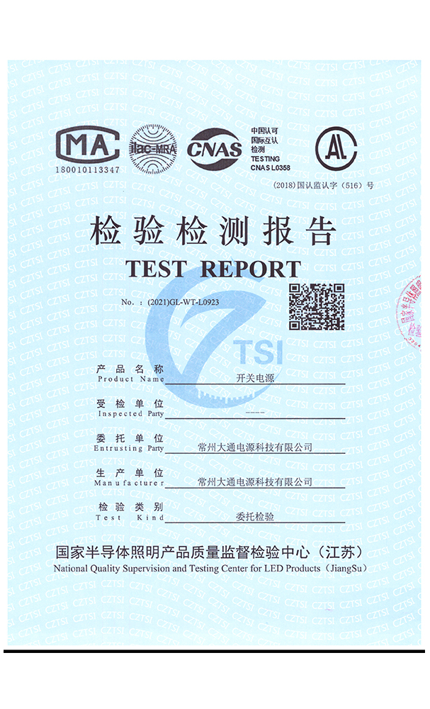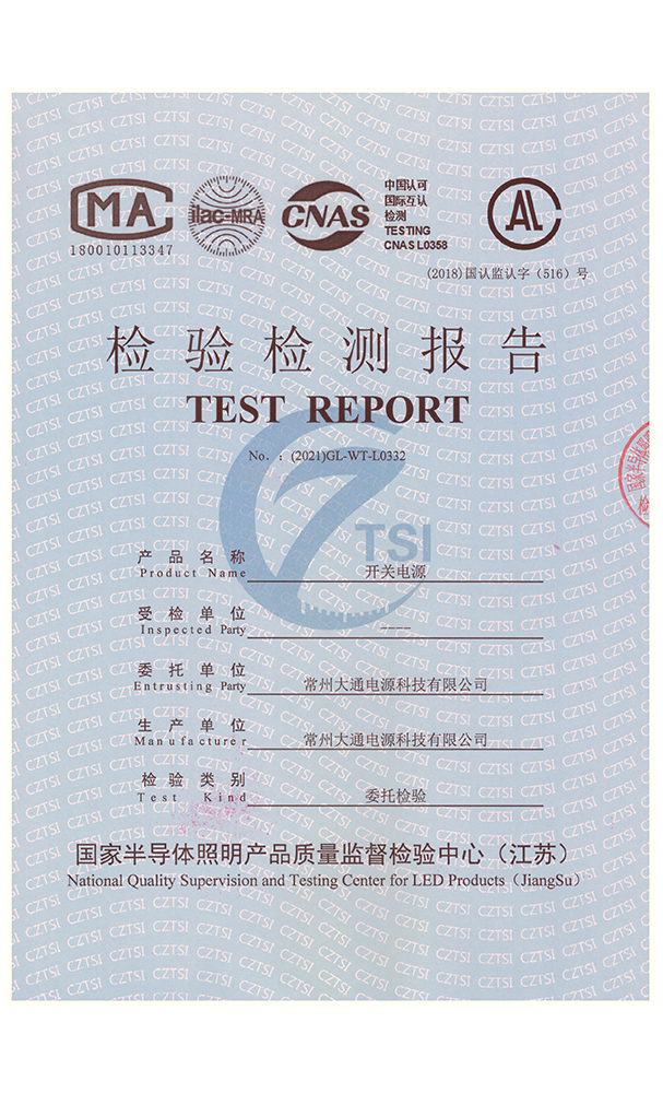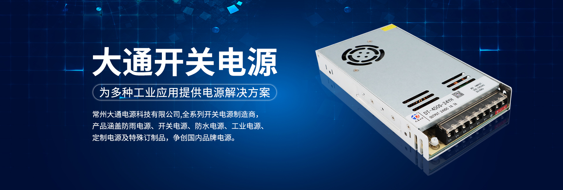 公司簡(jiǎn)介 大通電源(常州大通電源科技有限公司)-----全系列開(kāi)關(guān)電源專(zhuān)業(yè)制造商,公司位于歷史悠久的文化名城常州,產(chǎn)品系列從15W到10000W,千余種規格為客戶(hù)提供了極大的靈活性,產(chǎn)品涵蓋防雨電源、防水電源、工業(yè)電源、開(kāi)關(guān)電源及特殊定制品電源。 企業(yè)通過(guò)多個(gè)認
